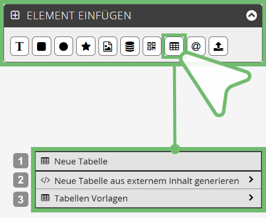 | → | | Wählen Sie im Popup Menü die Option Neue Tabelle |