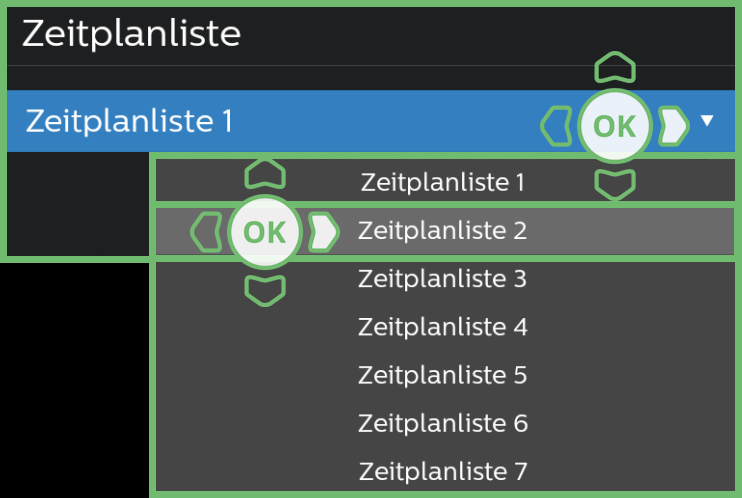 | Drücken Sie OK, um das Drop-Down Menü zu öffnen. | |