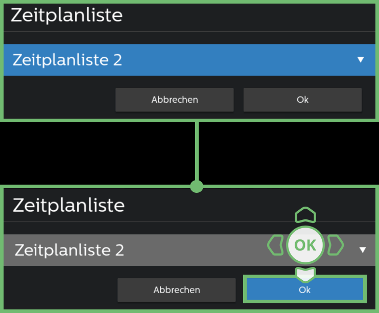 | Bestätigen Sie mit der OK-Taste. |
