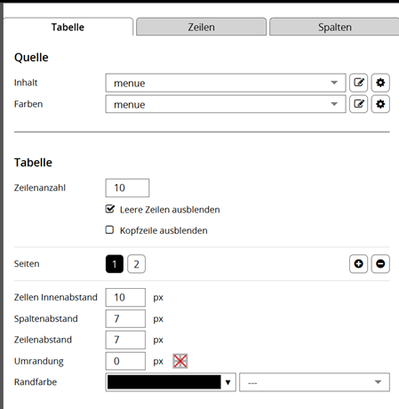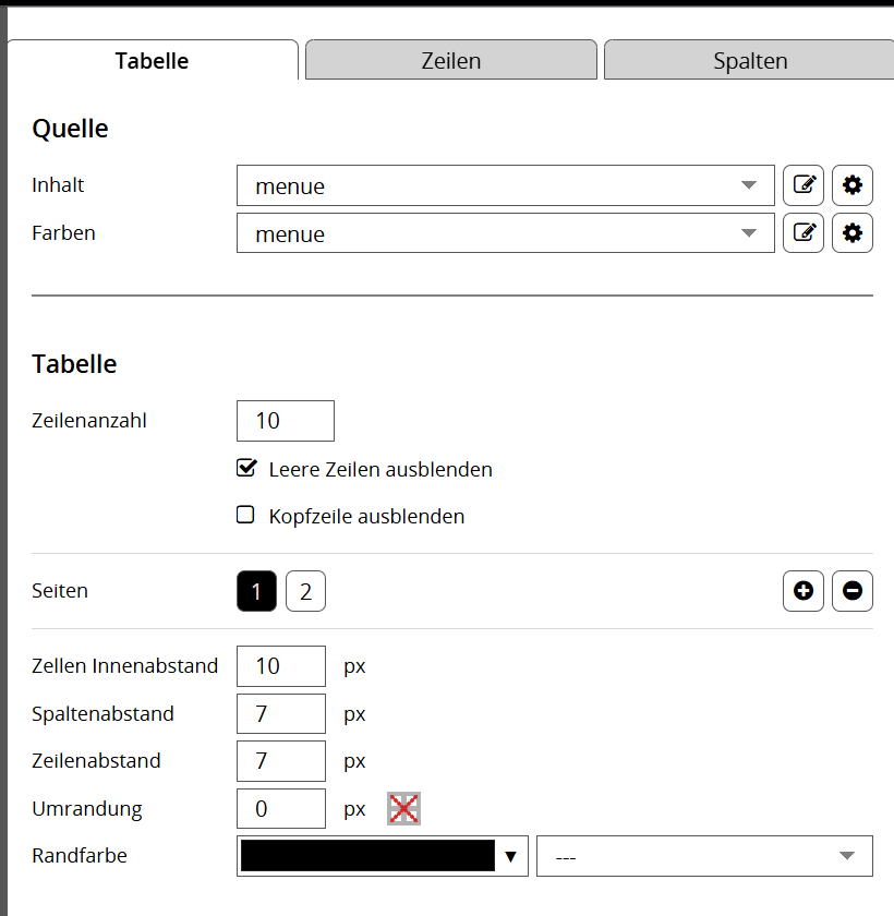 Tabelle | – Grundeinstellungen der Tabelle | |