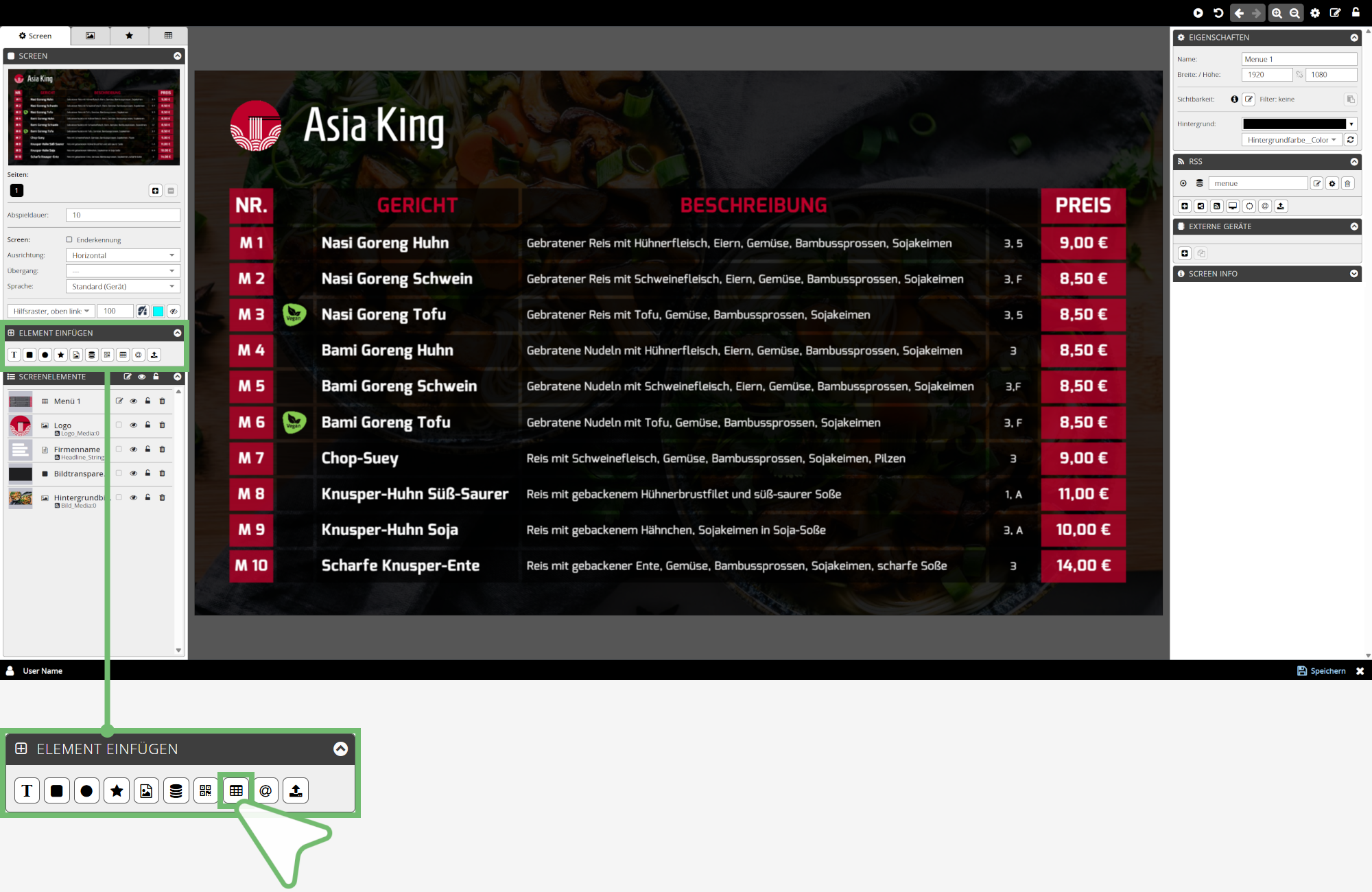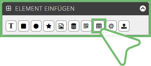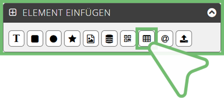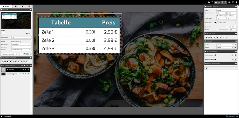 | Unter SCREENELEMENTE ist ein neues Tabellen-Element gelistet | |