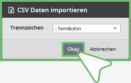| Wählen Sie im Drop Down-Menü das in der Datei verwendete Trennzeichen aus | |