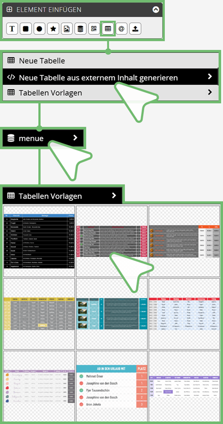 | → | | Wählen Sie im Popup Menü über die Option Tabellen Vorlagen die gewünschte Vorlage |
