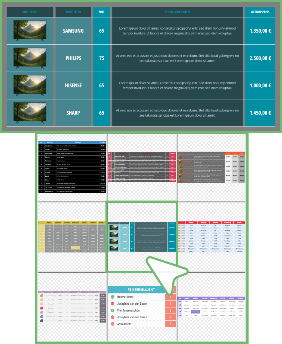 Gehen Sie auf Tabellen Vorlagen, öffnet sich ein Overlay mit den zur Verfügung stehenden Vorlagen: