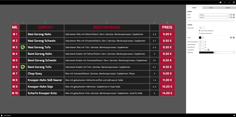 Für eine übersichtliche und strukturierte Darstellung Ihrer Inhalte können Sie Tabellen in Ihren Screens verwenden.